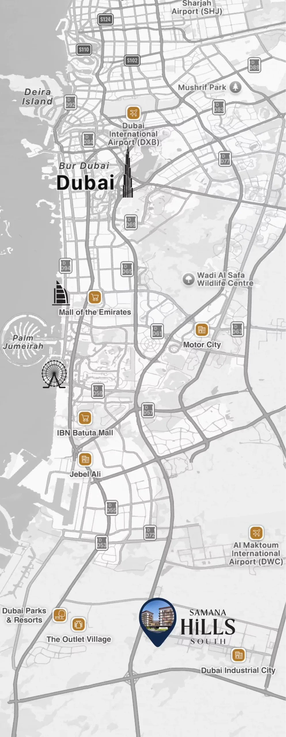 Strategically located next to Sheikh Mohammed Bin Zayed Road (E311) offering excellent connectivity across Dubai and easy access to Abu Dhabi